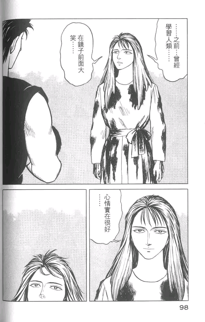 看到瀕死的後藤,新一的反思也很有意思,一開始想這種不想殺他的感覺是人類最後的寶藏啊!但轉念一想,自己只是渺小的人類,所能做的也只有保護自己的家而已。這句話前呼後應,前呼到前幾頁「到底誰才有權利決定人類和其他生命誰比較重要」的疑問,後應到整部最後一頁「生命是如此短暫,在他結束以前,就讓我們互相依偎吧!」姑且不論人類和其他生命的關係,我們能顧好的只有自己的家,能做的只有自己力所能及的事。